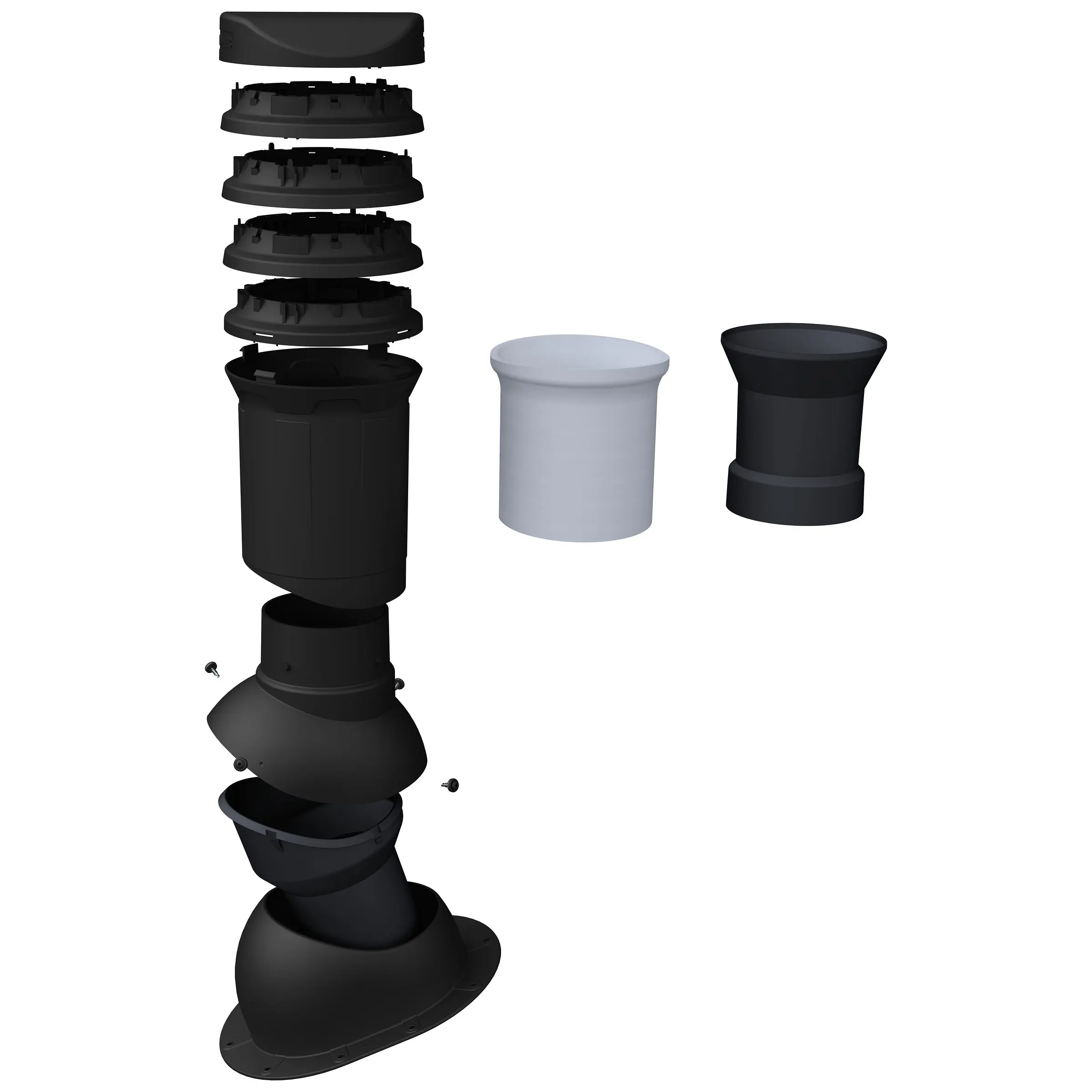Kominek wentylacyjny izolowany DN125 – wersja izolowana wyposażona jest w dodatkową warstwę termoizolacyjną minimalizującą powstawanie skroplin w kanale kominka. Kominek składa się z elementów łączonych „na klik”, co umożliwia szybki montaż i demontaż nasady, np. w celu dokonania przeglądu technicznego. Montowany w zakresie regulacji od 0° do 50°. Opakowanie zawiera wszystkie elementy niezbędne do montażu kominka na pokryciu dachowym. Wykaz modeli dachówek znajduje się w załączniku.